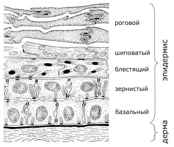 Чтобы лучше понять особенности ВПЧ, важно иметь представление о строении кожи. Кожа состоит из двух больших слоев: верхнего – эпидермиса; и нижнего – дермы. При этом эпидермис включает следующие слои (перечислены от нижнего к верхнему): базальный, зернистый, блестящий, шиповатый и роговой. Деление клеток эпидермиса происходит в самом нижнем слое – базальном. Постепенно клетки эпидермиса перемещаются из более нижнего слоя в более верхний. В процессе этого перемещения происходит созревание клеток эпидермиса. С самого верхнего слоя эпидермиса (рогового) происходит постепенное слущивание омертвевших клеток эпидермиса.